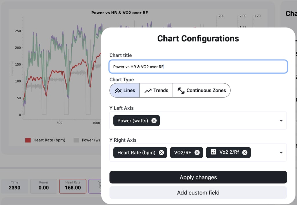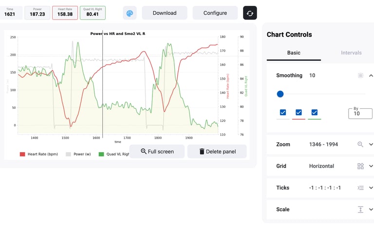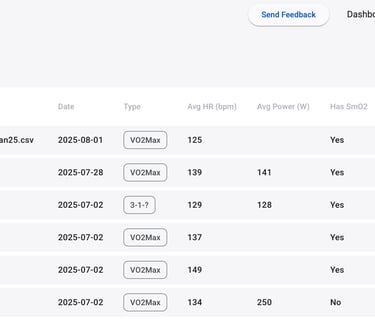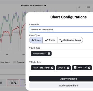 Standardized field names ensure consistency across sessions, while default configurations make charts instantly usable. Powered by intelligent automation, pre-processesing your data to identify structure, detect patterns, and surface key insights. Whether you're working with VO2, SmO2, or substrate data, each activity keeps your workflow organized so you can focus on insight—not setup.